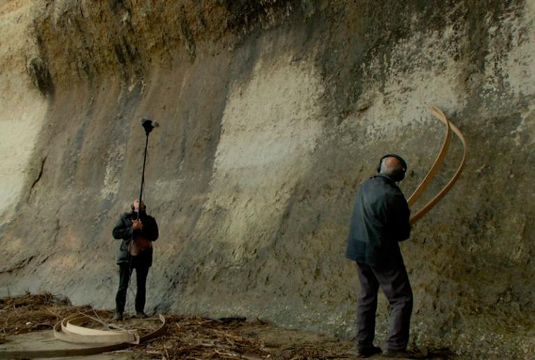 E.C et D.T viennent explorer les sonorités du bâtiment, créer et enregistrer une musique des matériaux dans les différentes acoustiques. Ils photographient les actions et le site.