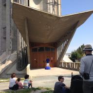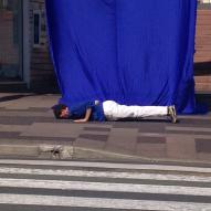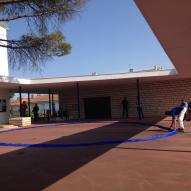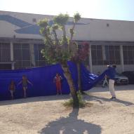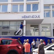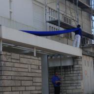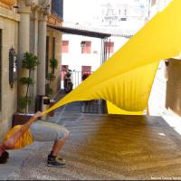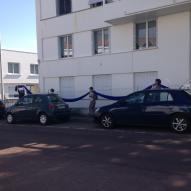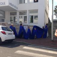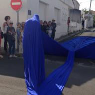 Durant le MOIS DE L'ARCHITECTURE en avril 2019, une voile bleu Royan de 30m de long a dialogué avec l'architecture de la Reconstruction de la rue Gambetta jusqu'àu Temple protestant en passant par la médiathèque, le gymnase des Mouette et Notre Dame , dans le quartier de Foncillon à Royan.