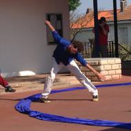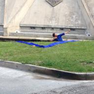 Durant le MOIS DE L'ARCHITECTURE en avril 2019, une voile bleu Royan de 30m de long a dialogué avec l'architecture de la Reconstruction de la rue Gambetta jusqu'àu Temple protestant en passant par la médiathèque, le gymnase des Mouette et Notre Dame , dans le quartier de Foncillon à Royan.