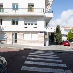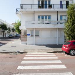 Conçue lors de la Reconstruction de Royan entre 1957 et 1961, cette maison de ville est composée de 3 étages à soutènements dégressifs, depuis les piliers du rez de chaussée jusqu’aux potelets métalliques du rooftop, en passant par les pilotis des coursives.